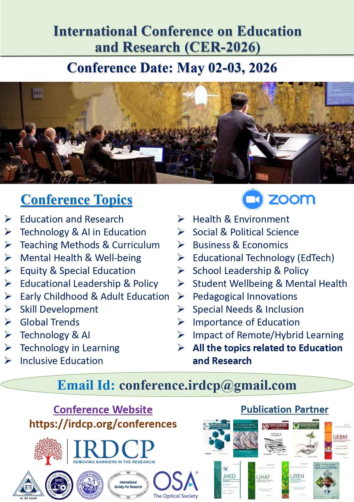 Contact E-mail id for any Query and Abstract Submission: conference.irdcp@gmail.com