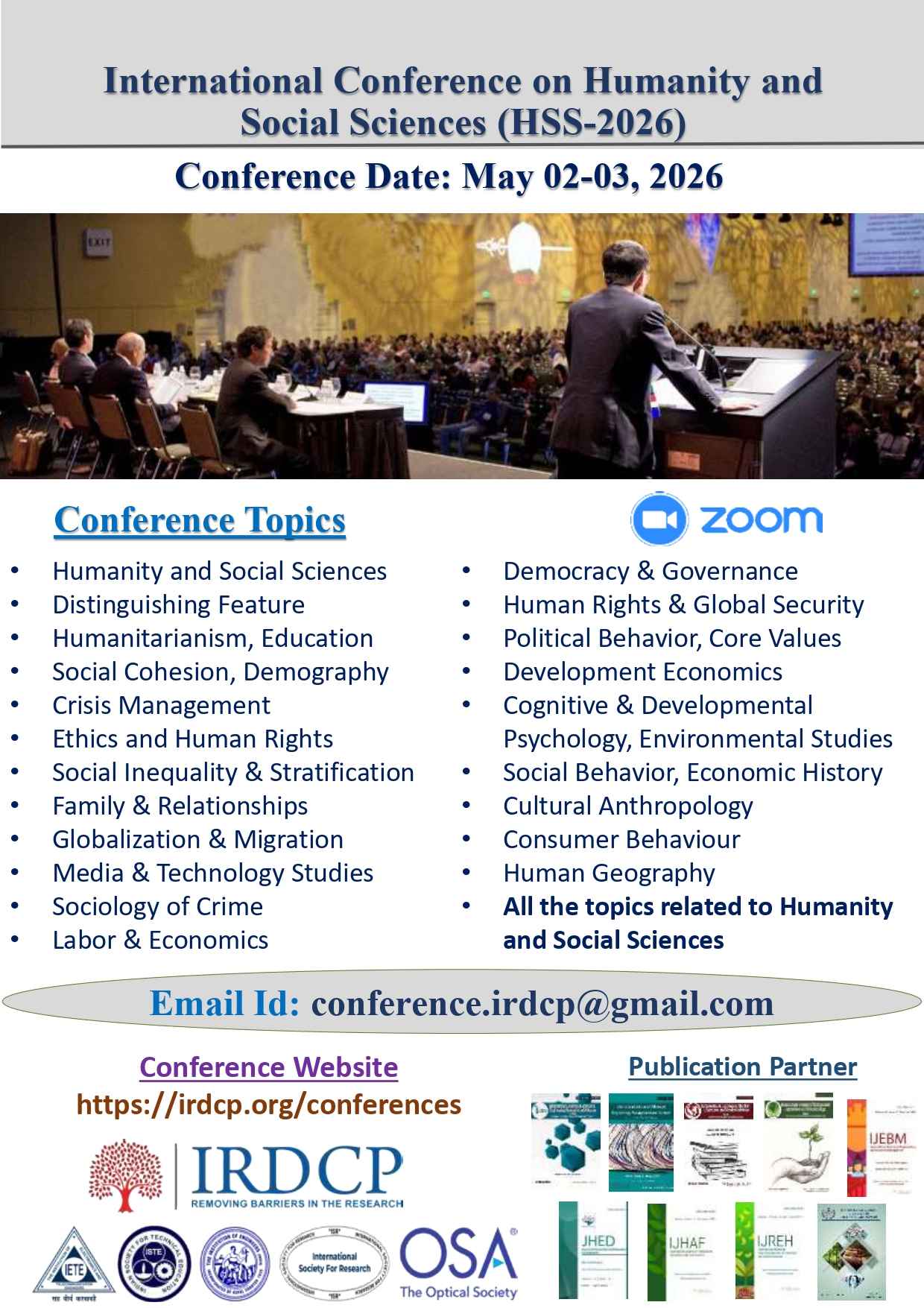 Contact E-mail id for any Query and Abstract Submission: conference.irdcp@gmail.com