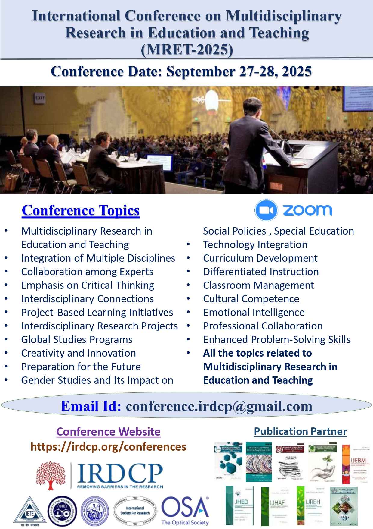 Contact E-mail id for any Query and Abstract Submission: conference.irdcp@gmail.com