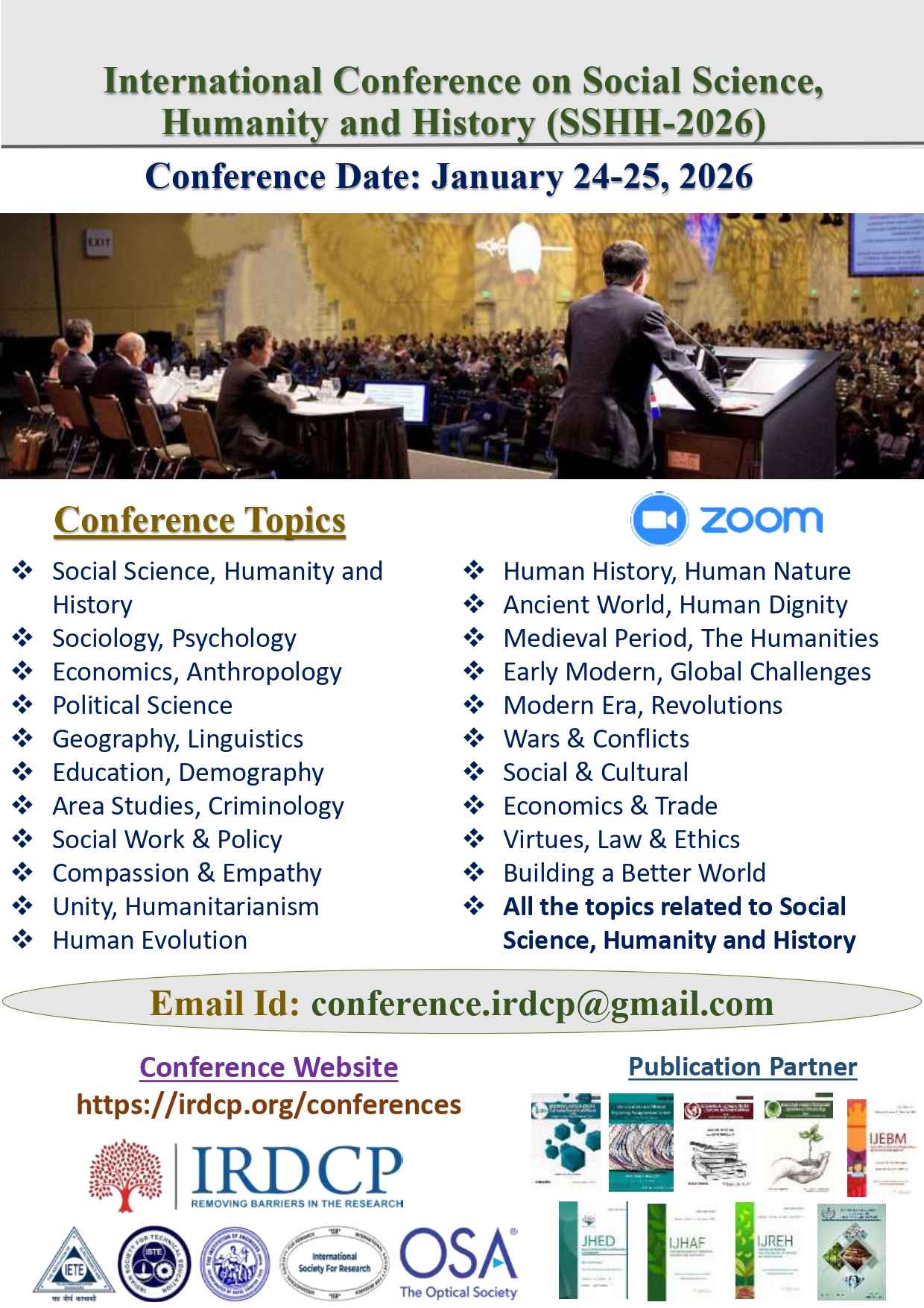 Contact E-mail id for any Query and Abstract Submission: conference.irdcp@gmail.com