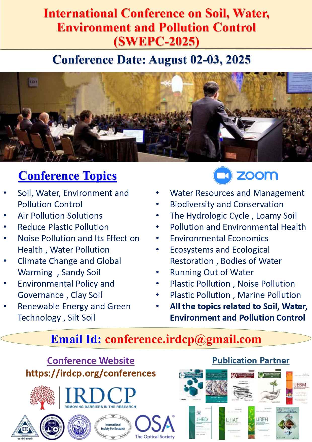 Contact E-mail id for any Query and Abstract Submission: conference.irdcp@gmail.com